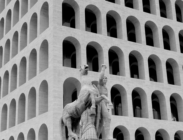 il gioco di archi sullo sfondo è stupendo ma il grigio della statua ha la stessa tonalità di quello dell'edificio e non stacca a sufficienza.