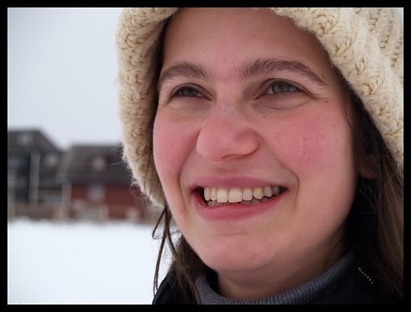 Inizialmente avevo pensato che con un po' di Photoshop si poteva sistemare un po' (togliere qualche imperfezione, rendere la pelle più uniforme e meno a macchie...), però ho pensato che, dopotutto, anche questi "difetti" rendono la foto più naturale e, complice il bel sorriso (spontaneo, aggiungerei, visto che hai scritto che il ritratto è "rubato"), più piacevole da guardare