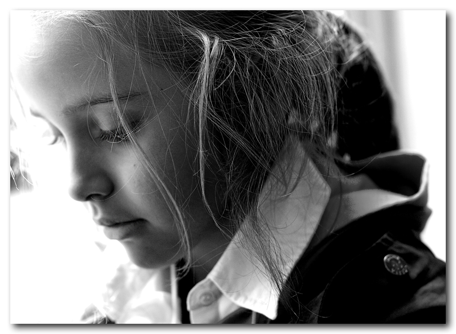 Dolce ritratto con una perfetta esecuzione, avrei decentrato un pochino verso destra per dare meno risalto ai capelli.