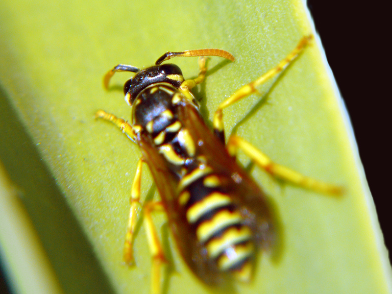 condivido pienamente il tuo commento, stefano, perchè è quello che ho pensato anche io dopo e durante lo scatto (focalizzando sulla testa della vespa). Il fatto strano è che l'insetto si posato per più un quarto d'ora sulla foglia della mia iucca a prendere il sole, senza muoversi, senza un punto di riferimento, succhiare il nettare o altro.... e il bello è che era proprio di spalle ed irreverente, come tu la definisci . Quindi con lo scatto ho cercato proprio di restituire la situazione di stasi della vespa sula foglia nella sua posizione nei miei confronti, nè più, nè meno. Ti posto uno scatto da un'altra prospettiva per farti intendere meglio la poszione dell'insetto.