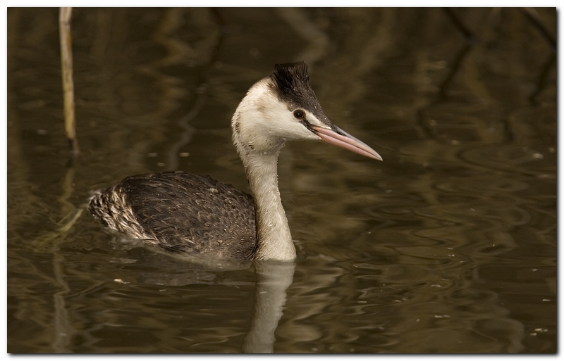 Non vi racconto che dopo mesi di appostamento sono riuscito a fotografare da vicino questo esemplare di Svasso maggiore; anzi il giorno 18/02/2007 vista la pessima giornata, in compagnia di un amico decidiamo di dedicare la mattina alla perlustrazione di vecchi e nuovi posti; naturalmente il corredo fotografico a seguito è obbligatorio. Dopo aver visitato alcuni luoghi senza nessun esito decidiamo di rientrare, nel tragitto vediamo questo svasso (la prima volta che lo vedo nelle mie zone) che nuota lungo un canale largo circa 4/5 mt. Decidiamo il colpaccio, con l’auto lo superiamo, parcheggiamo e usciti dall’auto ma siamo subito avvistati dallo svasso che ci da le spalle e si immerge e riemerge 20/30 mt più in la. Io propongo e metto in atto la tecnica del tuffo (inventata sul momento) ovvero quando si immergere anticiparlo a corsa e attendere che riemerga. Le prime due corse sono troppo corte rispetto alla velocità e resistenza del volatile che emergeva oltre il punto che avevo previsto; decido di aumentare il tratto ma lo svasso emergeva sempre davanti a me e l’affanno della corsa e la velocità con la quale si immergeva appena mi vedeva, mi permettevano solo foto del posteriore per giunta mosse per la mancanza di luce. Alzo gli ISO imposto la massima apertura e la raffica con AF dinamico e continuo a corrergli appresso fin quando dopo varie corse (500/600 mt dall’auto) lo svasso si arrende e, forse stremato quanto me, mi concede 30/40 secondi di posa a pochi metri ed io subito ne ho approfittato tenendo premuto il pulsante di scatto fin quando il buffer non si è esaurito per due o tre volte. Il risultato (per me impagabile) lo vedete, ma la poca luce e l’affanno che non mi faceva tenere ferma la macchina mi ha fatto un sacco di foto mosse o fuori fuoco e ne ho salvate soltanto 2 (quasi uguali  _________________ Aiutami a scegliere, vota il calendario 2010