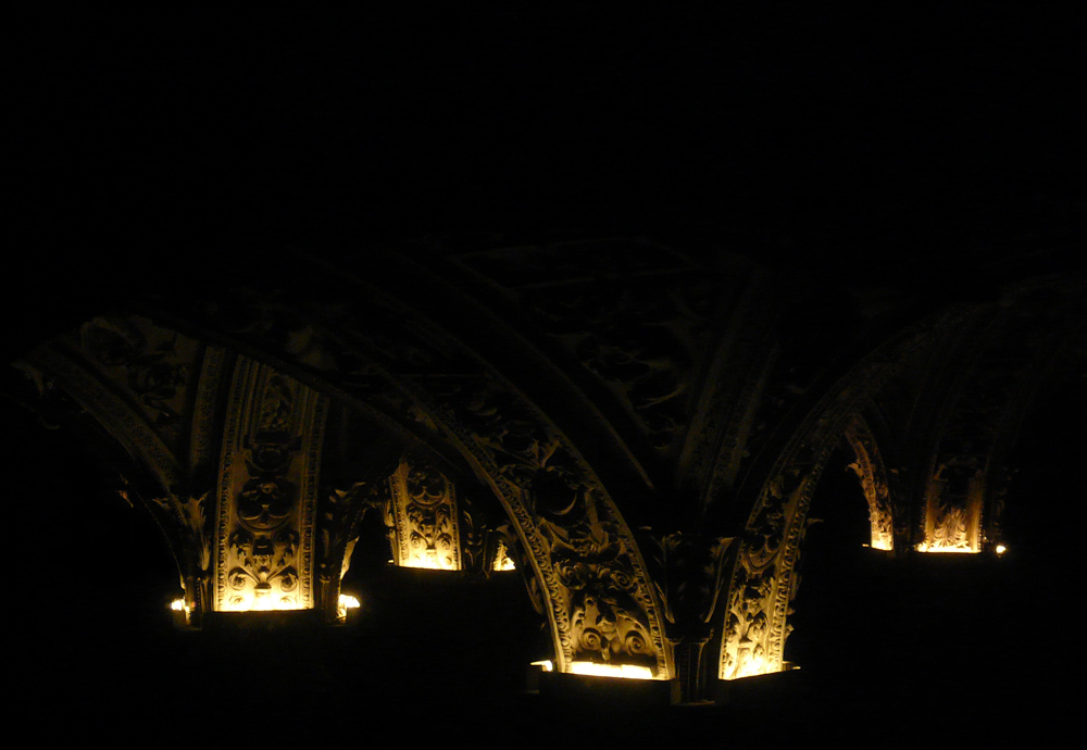 La cripta in questione è quella del Duomo di Milano. Nel retro dell'altare maggiore lato sinistro c'è una grata che ti permette di appoggiare la macchina foto e traguardare la cripta dall'alto . Willard |