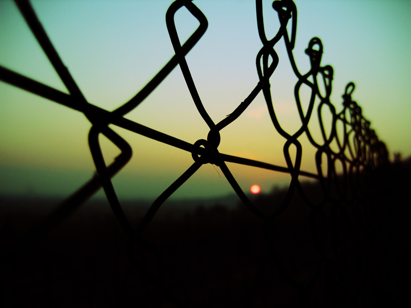 bello il nero del reticollato e lo sfondo sfocato con quei colorisfumati