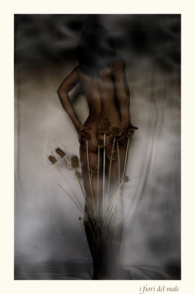 per una volta nel titolo i "fiori del male" il riferimento a Baudelaire è giusto. essenze del fumo, corpo nudo, fiori scarni, atmosfera ovattata che dal chiaro sale al nero. Anche le pieghe del lenzuolo sono perfette, ricordano proprio tante poesie di Charles. Manca solo il gatto hihi ma visto che era una metafora, vanno bene le dita-artigli della donna  |