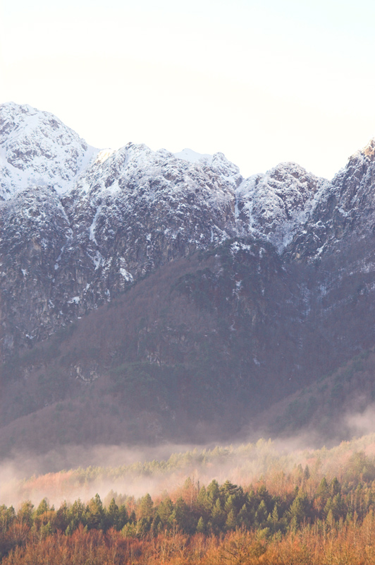 quoto cius.. scurendo molto il terzo centrale già l'insieme acquisterebbe parecchia suggestione.. il problema è che il cielo è lattiginoso, mentre per rendere affascinante questa bella foto ci vorrebbe un cielo molto scuro, contrastante con la neve delle cime... volendo, comunque, ci si riesce (Adams docet..) ...