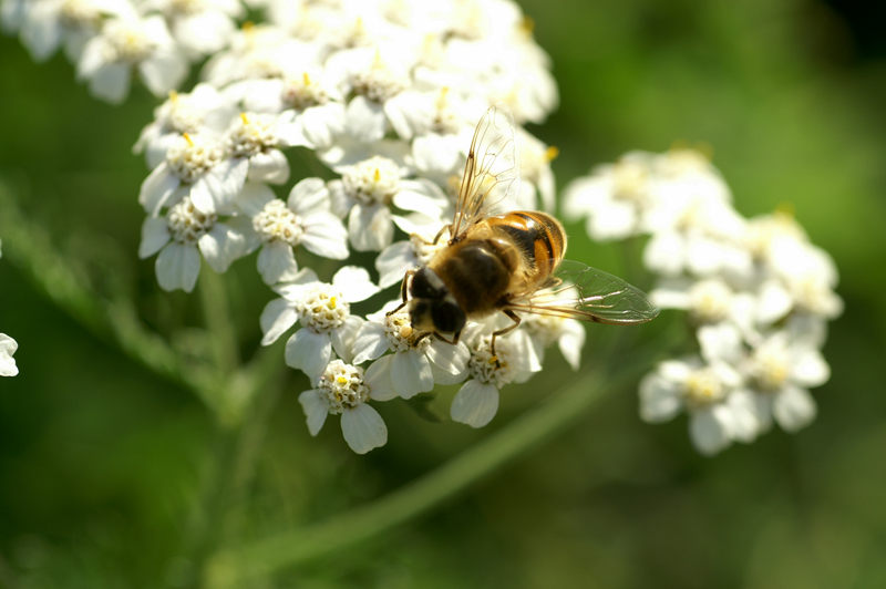 i difetti che noto su questa foto sono i bianchi bruciati e la messa a fuoco che cade sulla coda dell'ape piuttosto che sulla testa.