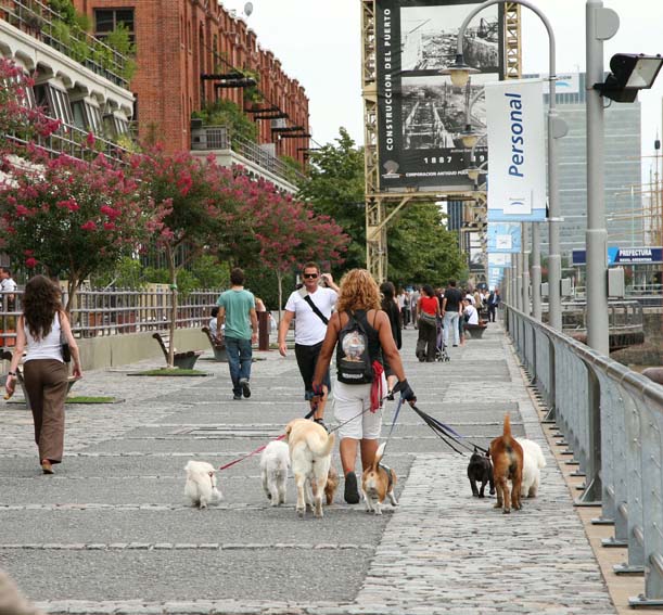 Buenos Aires - Puerto Madero. I dog sitter sono frequenti in città.