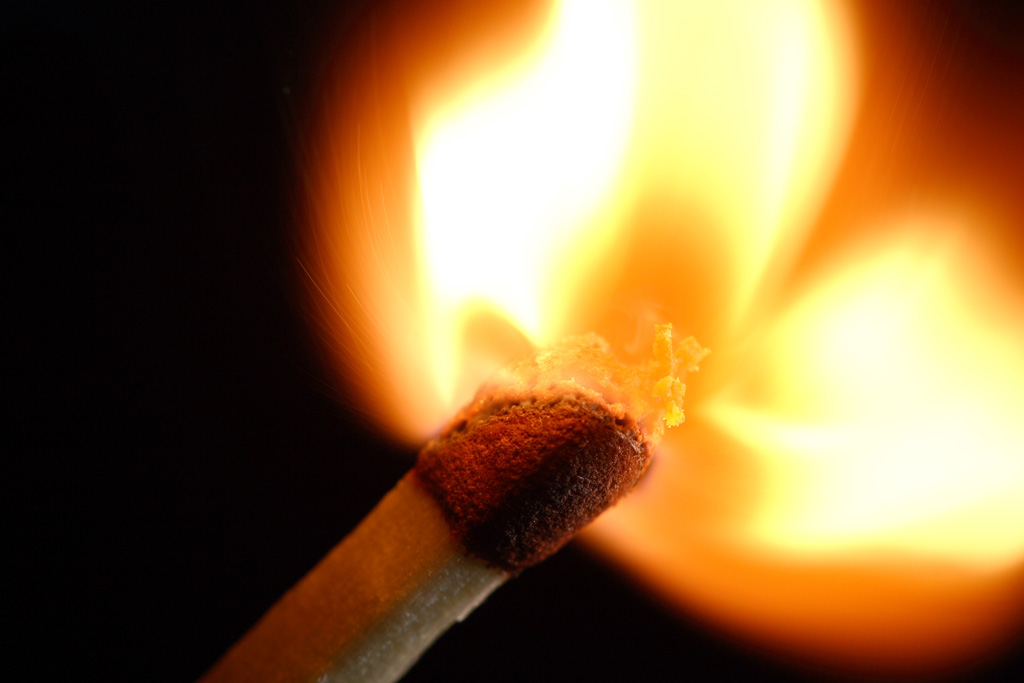 1) il fiammifero l'hai fissato a qualcosa e poi accesso con qualcos'altro (un accendino?) un instante prima di scattare?