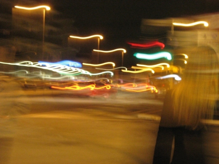 questa foto rappresenta il mio pensiero sulla città. vengo da un piccolo paese e da qualche anno vivo a roma. chi condivide questa esperienza con me, sa che una delle peggiori cose che si trovano nella metropoli sono la spersonalizzazione e, soprattutto in questi ultimi tempi, la sempre minore attenzione alle persone. partendo da questo punto di vista, la critica precedente non può altro che trasformarsi, perchè è ovvio rappresentare la città, con le sue luci e le sue macchine, come elemento centrale della scena, per riservare un posto ben più secondario alle persone che in essa vivono. quindi a mio avviso è nella realtà che il soggetto diventa sfondo e lo sfondo diventa soggetto.