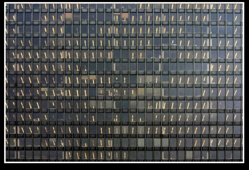 mah...? secondo me Mies si arrabbierebbe a saperlo considerato solo per il suo valore di texture...in effetti è l'ultima cosa a cui ho pensato guardandolo e fotografandolo. Anche se è innegabile anche quell'effetto. Io credo che il suo "bello" sia invece l'irripetibile casualità delle luci...accese molte, spente alcune. Il lavoro all'interno rende vivo l'edificio, senza le luci (o, allo stesso modo con tutte le luci) sarebbe pura forma, invece è vivo, di una vita monotona...forse, ma vivo.