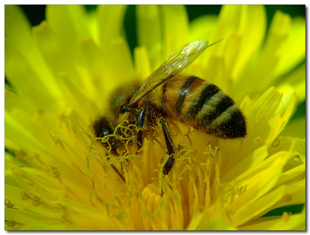 Secondo il mio parere avresti dovuto spostarti un pò sulla sinistra e tenere l'ape perpendicolare in asse, in linea orizzontale tanto per capirci!!!, per fregare la maledetta profondità di campo che non sei riuscita ad ottenere, la testa non è sfuocata, è solamente mancanza di profondità di campo! al limite tenendo la solita posizione avresti dovuto chiudere molto di più i diaframmi, sempre e concesso dalla luce che avevi a disposizione.