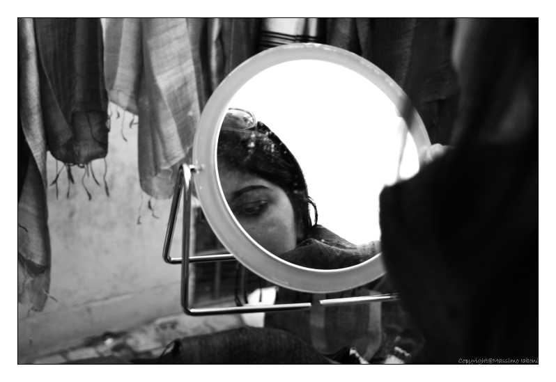 ciao,questa foto mi piace molto per diversi motivi:1 perchè hai pres solo una parte del viso della ragazza riflessa nello specchio cosa strana perchè bastava spostarsi un pò piu a sinistra,credo,per prendere tutto il viso.e la cosa mi piace piu cosi!2 perchè sia nel riflesso che sullo sfondo si vedono i foulard che giustificano la scelta del titolo!insomma mi piace ciao Ok! Ok!