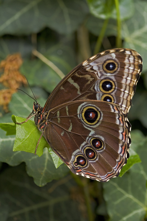 Io trovo che la porzione inferiore dello sfondo, caratterizzata dalle foglie, richiama le nervature e il profilo dell'ala, creando un curioso contrasto fra ala e foglie. La porzione superiore risente invece di quella macchia marroncina che distoglie, dopo qualche ora di ammirazione, lo sguardo dal centro d'interesse.
