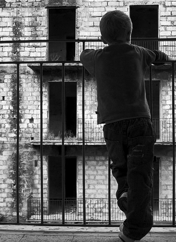 il bambino sembra pensare " ma che palle sto palazzo...."