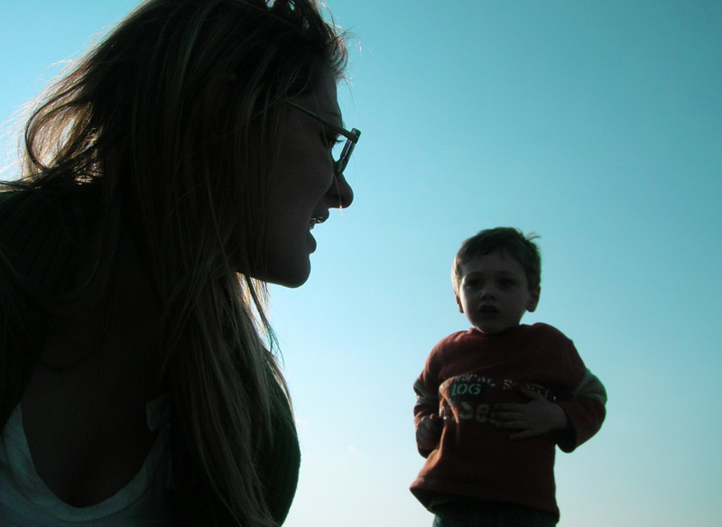 l'espressione di lui che si fa piccolo e la mamma invece mastodontica che lo sovrasta...
