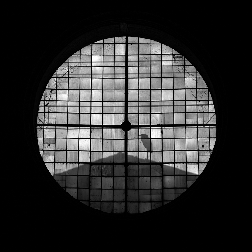 In visita alla chiesa di S. Andrea a Mantova, mentre stavo uscendo ho visto attraverso il rosone che c'era l'ombra cinese di questo trampoliere...