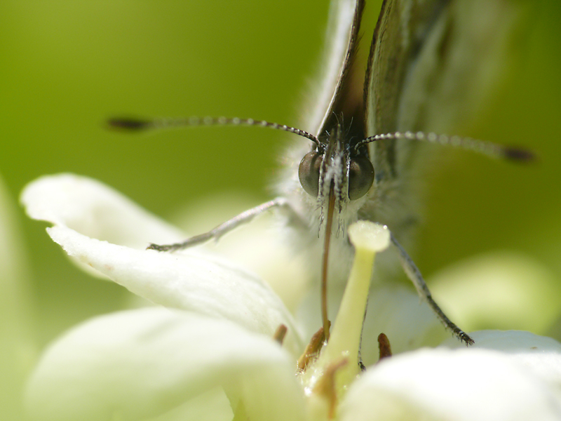 Bell'ingrandimento, peccato che la ripresa frontale non renda giustizia alla farfalla e alle sue bellissime, delicate e sabbiose ali.