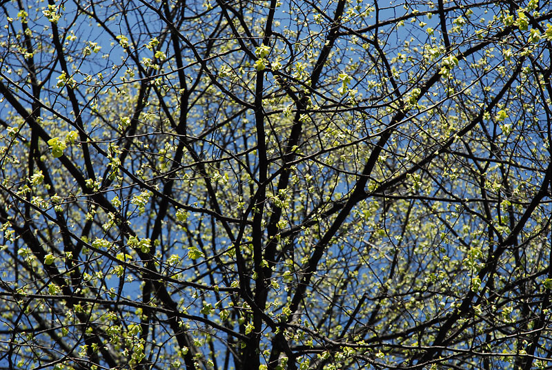 Una trama tutto sommato interessante, specie per l'accostamento delle tonalità tenui delle giovani foglie con i colori scuri dei rami; la regolarità degli intrecci poi rende equilibrato e appagante il colpo d'occhio, ma, se mi concedi l'estrema sincerità, manca di qualcosa che la renda particolare, non saprei: una luce diversa, magari filtrante dai rami, oppure un elemento che rompa la monotonia della texture ponendosi come fulcro dell'intera scena, insomma: è un'immagine certamente piacevole, ma di una bellezza "pacata", senza sussulti.