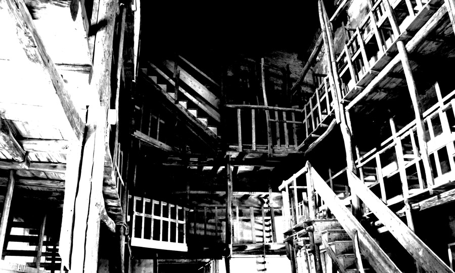 le parti bianche bruciate sono volute, aumentando di tanto il contrasto, sono una serie di stanze-depositi di oggetti impegnati, di solito panni, per questo il palazzo è detto panni vecchi. Qui c'è il reportage: http://www.photo4u.it/viewtopicnews.php?p=1702353#1702353