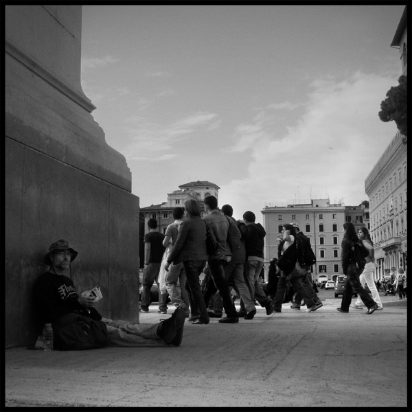 Il contesto era Piazza Venezia a Roma, e chi la frequesta sa, più o meno, a cosa mi riferisco.