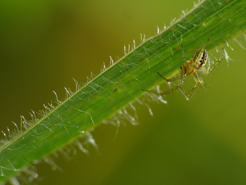 ecco un piccolissimo ragnetto che se ne stava sotto un filo d'erba....certo che vista da vicino anche un filo d'erba sembra strana...avrebbe bisogno di una bella depilata!