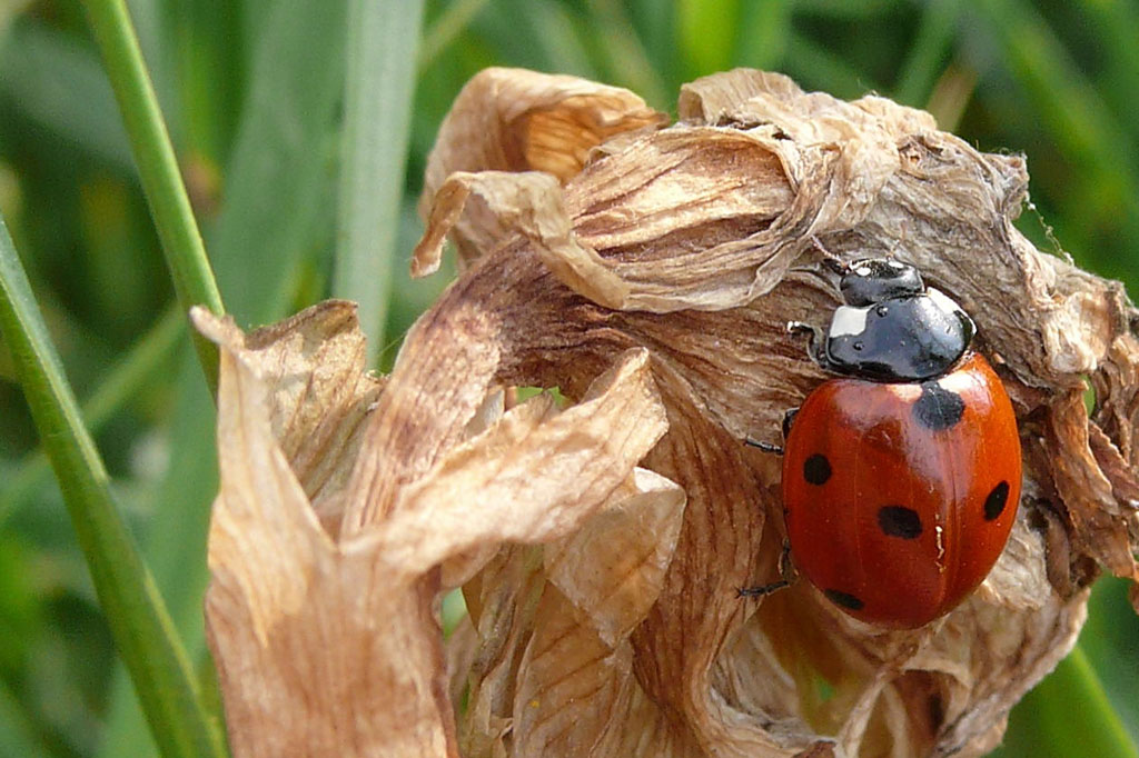 Buona composizione, bello il titolo, belli anche i colori, però la coccinella la vedo non molto nitida, forse micromossa..... comunque visto che non usi una reflex non è male.