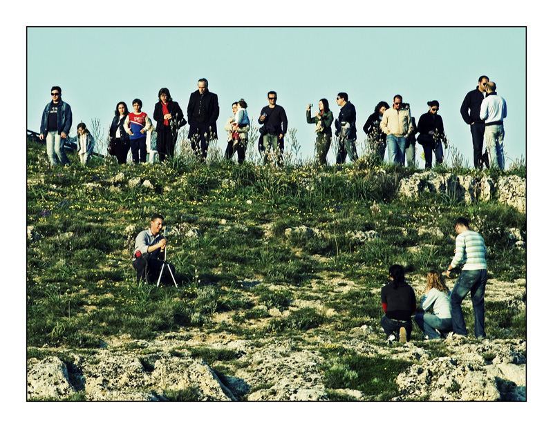 La parte alta mi sembra talmente ben riuscita considerato il fatto che ci sono diciotto protagonisti, quasi tutti abbastanza espressivi, e solo due sovrapposizioni (risultato non facile da ottenere), che mi verrebbe da proporti un taglio estremo, sacrificando la scena in basso (che in ogni caso resta un po' in secondo piano a causa del fatto che i protagonisti si mimetizzano un po' con lo sfondo). Certo sarebbe tutt'altra foto.  |