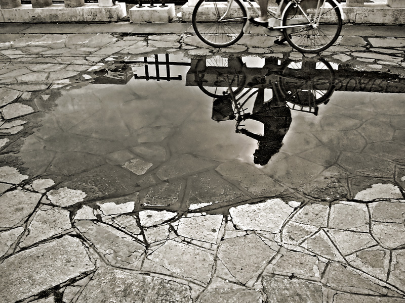 consentimi però un piccolo appunto personale:non mi convince molto l'inquadratura.per me sarebbe stato meglio o prendere tutta la ragazza in bici,o addirittura tagliare yuyya la bici e far vedere solo l'immagine riflessa sulla pozzanghera(forse meglio questa seconda immagine)che ne dici?ciao |
