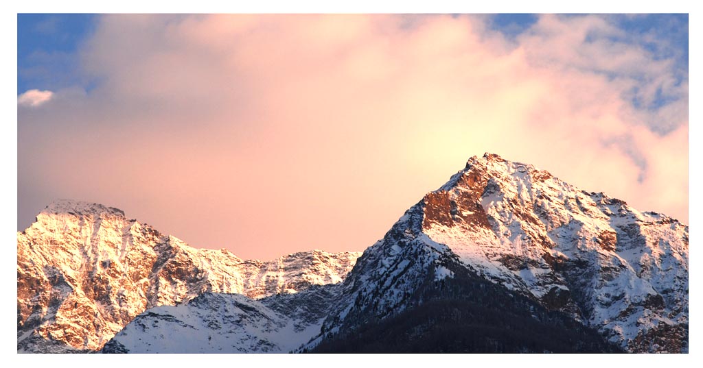 grandiose cime rosate, e dietro e sopra di loro, il morbido fluttuare delle nubi...