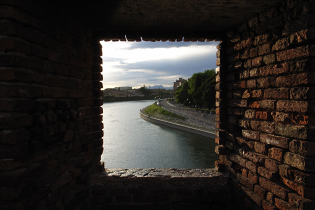 La vista è da una feritoia del ponte di Castelvecchio scaligero di Verona