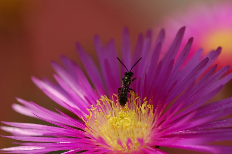 Immagine attraente. Credo però che ci sia una certa difficoltà a capire chi sia il soggetto principale. Il fiore o l'insetto? Se è il fiore,ok. mi pare buona la maf sui pistilli, lo sfocato dei petali mi pare gradevole. i colori mi sembrano resi molto bene.Un pochino bruciati, in alcuni punti, i bianchi. Se il soggetto fosse l'insetto, come potrebbe sembrare dal titolo, direi che la maf non cada su di esso. Rendendo pochi dettagli dello stesso, facendolo apparire decisamente impastato.ciao  _________________ td.1867 = Toso Davide * NIKON & SIGMA