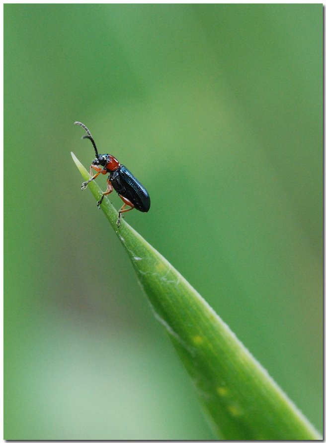 In questo caso posso solo dirti che la foto è molto ben eseguita ma che a mio parere il avrei abbassato leggermente l'inquadratura per far si che il filo d'erba o foglia che sia, non comparisse dall'angolo ma ben si leggermente sopra dando cos' una minor aria sopra l'insetto perchè veramente troppa.