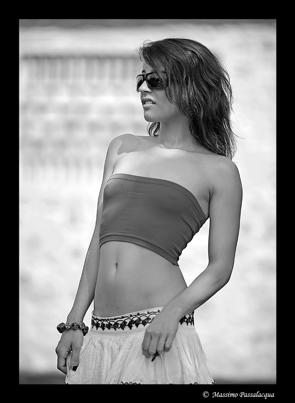 A me lo sguardo lontano di Daniela dietro gli occhiali da sole, i suoi lunghi capelli, il busto così elegantemente eretto piacciono molto.