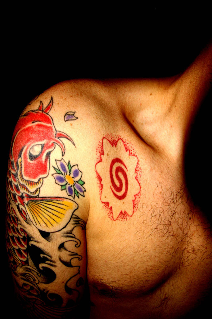 è raro vedere tatuaggi così ben ritratti. Bella la luce calda e i colori così vividi