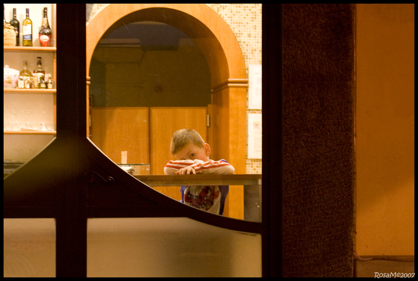 Grazie nonno , ho scelto di postare questa, il primo scatto prima degli accorgimenti, solo in questa ho riprovato la sensazione che mi ha portato a scattare. Quasi le due di notte... un bambino solo e annoiato in un bar... per grandi.