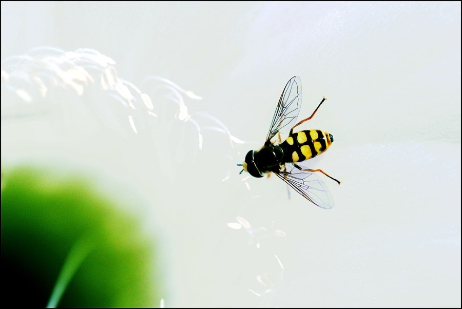 Ottima la composizione, il fiore sfondo, cornice e soggetto insieme all'ape descritta essenzialmente