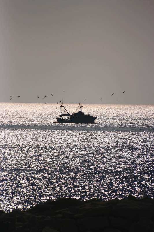 Belli quei gabbiani che svolazzano sopra l'imbarcazione in cerca di cibo..