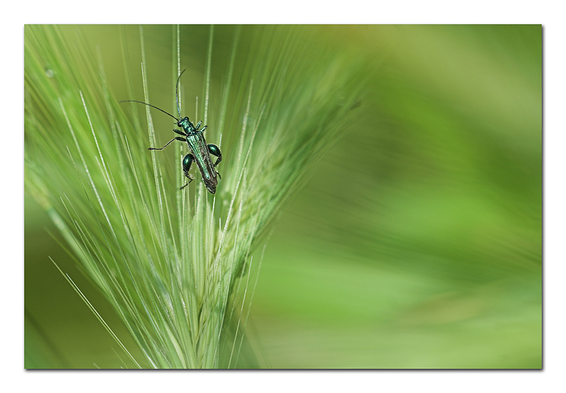 Lo sfocato sulle spighe di sfondo mi piace moltissimo. Ottima compo. L'oedemera nobilis sembra galleggiare sulla spiga.