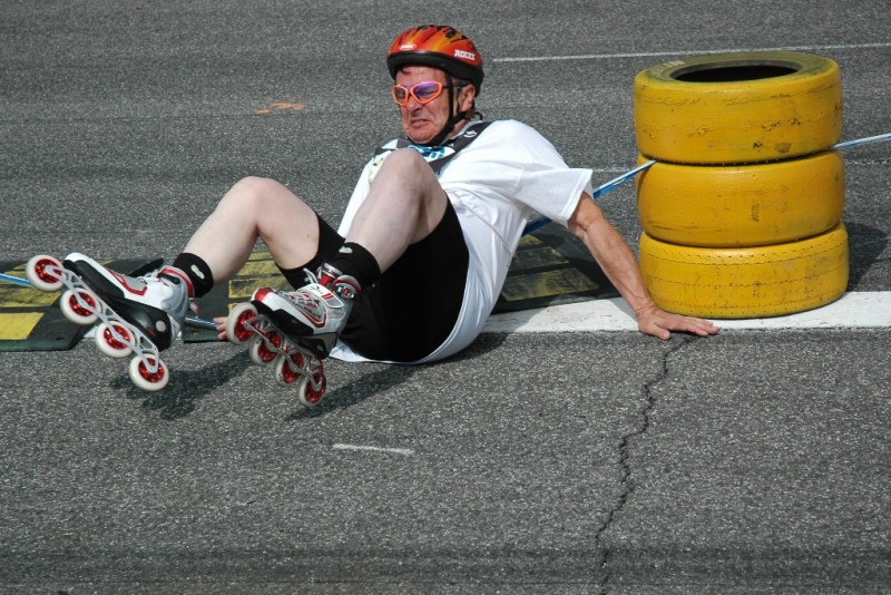 Belle le ombre dei pattini sull'asfalto grigio...ombre di una tinta chiara e banale... senza drammatizzazioni......con una profonda crepa dell'asfalto.... che antiesteticamente scoraggia ogni velleità di gesto atletico.......o illusione professionistica. Impietoso il paragone fra la tinta pallida delle gambe all'aria e il rosso quasi paonazzo del viso sofferente del nostro atleta.... reduce da una ingloriosa caduta... che lo mina più nell'orgoglio che nel fisico...............