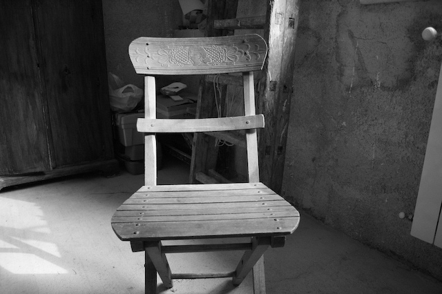 la locazione poteva essere interessante ma chiudendo cosi' sulla sedia, tra l'altro poco interessante da sola, hai fatto si che il racconto rimanga monco, non ci fai vedere il contesto e ci proponi una prospettiva troppo centrale e chiusa, quasi piatta con, oltrettutto, la seggiola che si sovrappone ad una bellissima scala. Insomma una piu' ampia ripresa con un diverso angolo avrebbe sicuramente restituito uno racconto di un angolo del passato piacevole da osservare!  _________________ ° Vittorio ° www.photovictor.it