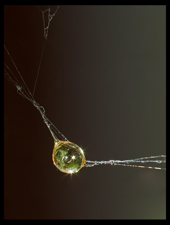 allora ho trovato questa goccia ( credo fosse d'acqua un pò sporka) appoggiata su una ragnatela che era attaccata su dei fiori.. lo scattata con la s5600 + lente macro e basta
