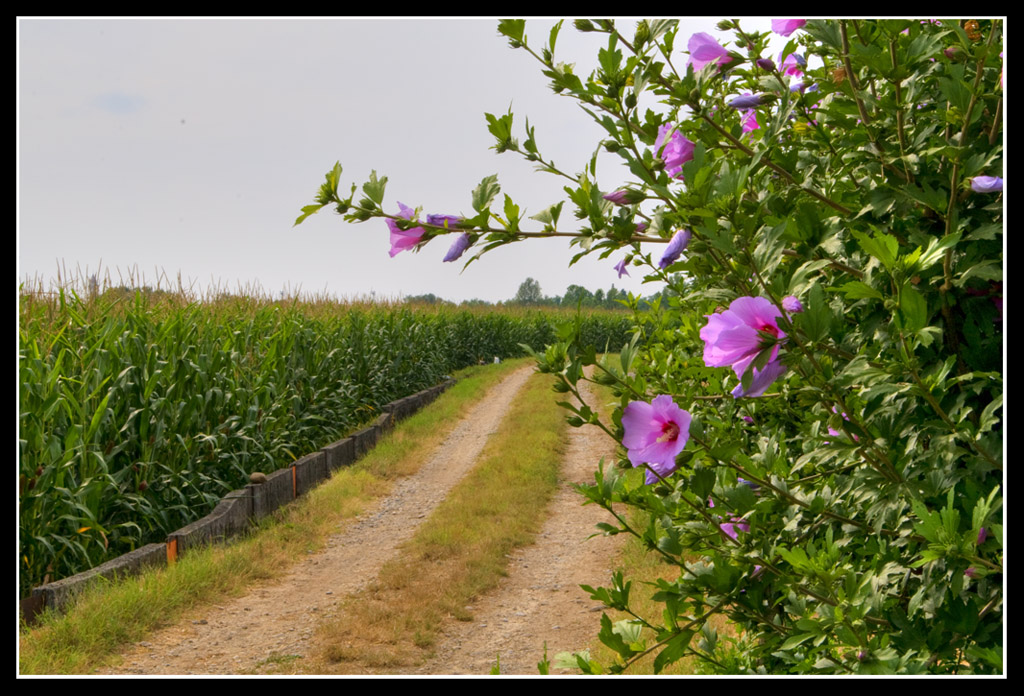 Anche se potrebbe sembrare un errore la sovrapposizione dei fiori al sentiero, credo che sia una scelta voluta che trovo pienamente condivisibile: dà significato all'immagine. Ci leggo la natura che sottolinea il proprio territorio... Smile