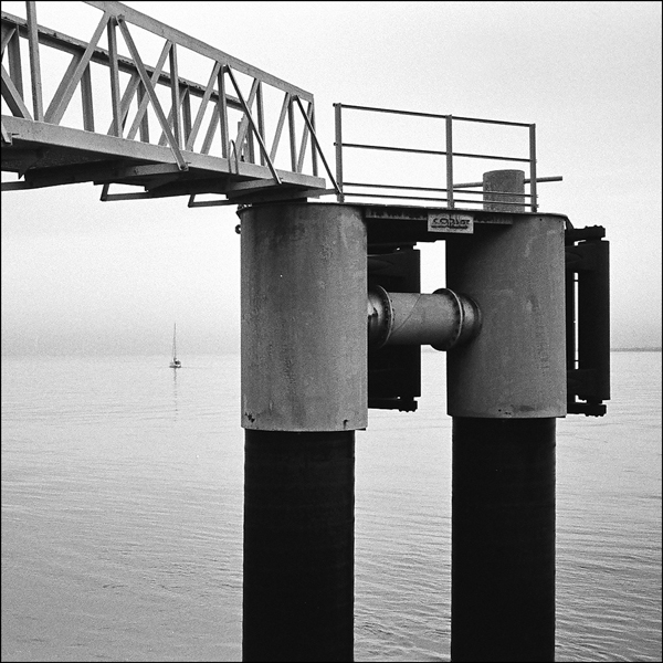 dei piloni che si equilibra in modo magistrale con la vela sullo sfondo.