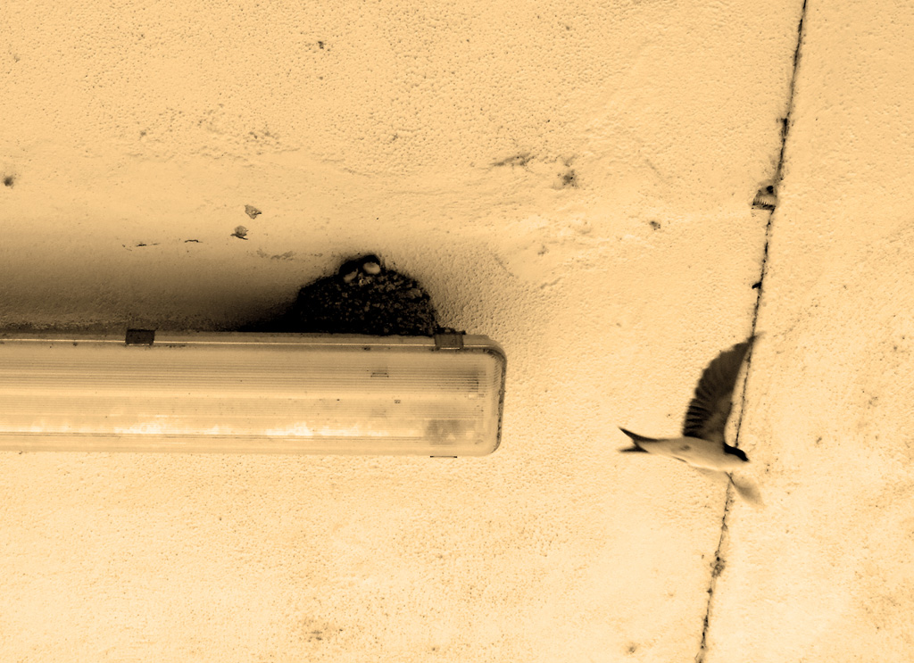 Personalmente mi piace davvero questo scatto, il volo chiuso dal cemento, un nido costruito (così mi sembra) in un anfratto urbano, la luce solare in qualche modo artificiale _________________ "Nell'attuale clima storico di disillusione è sempre più difficile trovare un senso nell'idea formalistica di una bellezza eterna".S. Sontang |