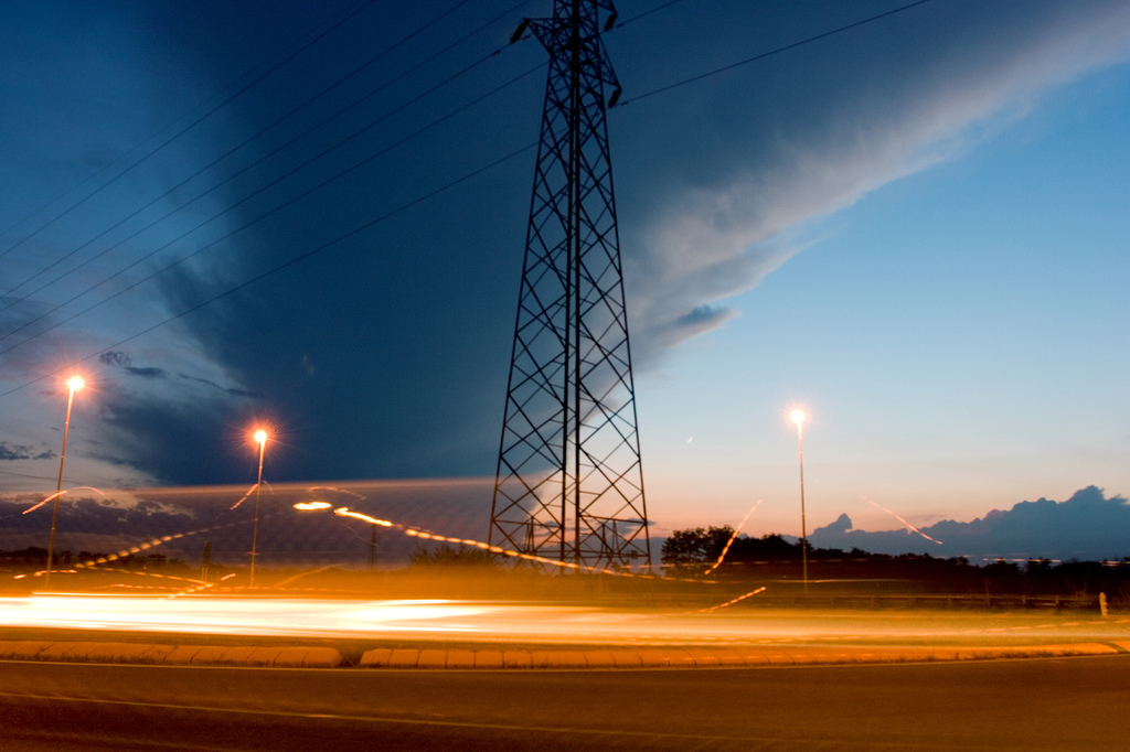 Buona l'idea, ottima la scelta dell'ora che ti ha regalato un cielo strepitoso. Secondo me, però, avresti dovuto evitare di tagliare il traliccio, magari cercando un diverso angolo di inquadratura, forse più dal basso.