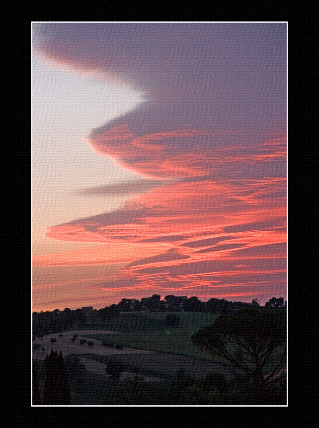 Andrea x me un gran bel paesaggio, anche se alcune nuvole tendono al rosa fosforescente........però la texture e la cornice proprio non le digerisco.........che dici mi faccio un pò di bicarbonato???