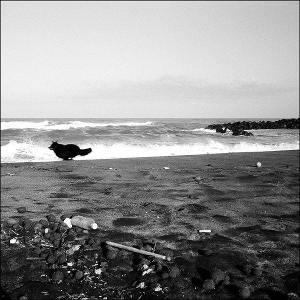 Domanda a parte (stupida, lo so!!!!), mi colpisce la scelta del cane in movimento così sfocato, lo fa diventare quasi una presenza, un fantasma, che si muove su questa spiaggia deserta, e inanimata, e desolata.. ma sempre ricca di elementi, che su una spiaggia, proprio non dovrebbero esserci..