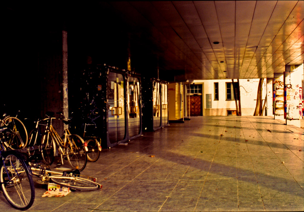 Penso prima di tutto che l'obiettivo che ti sei proposto di realizzare non e' facile .. raccontare l'uomo tramite la sua assenza richiede attenzione al particolare. La cosa che viene naturale fare è cercare di spostare il fulcro della narrazione su un elemento in grado di suggerire la sua assenza ... ci si concentra sugli strumenti che normlamente utilizza come in questo caso ad esempio le biciclette abbandonate. Io avrei cercato di valorizzarle ancor di più e di rendere ancor più "drammatica" la scena, cercando un punto di ripresa insolito (ad altezza terra per esempio, con qualche taglio inclinato) ... solo idee si intende ... La parte destra e' un po' spoglia rispetto all'altra (dal punto di vista compositivo intendo), la luce ed il tratto cromatico aiutano a rafforzare l'idea della desolazione. In conclusione l'esperimento e' forse stato leggeremente compromesso dall'approccio che ha dato maggior rilievo all'architettura ritratta piuttosto che ai segni del passaggio dell'uomo. L'asse narrativo si sposta quindi più sulla struttura che sull'uomo e sulla sua assenza.