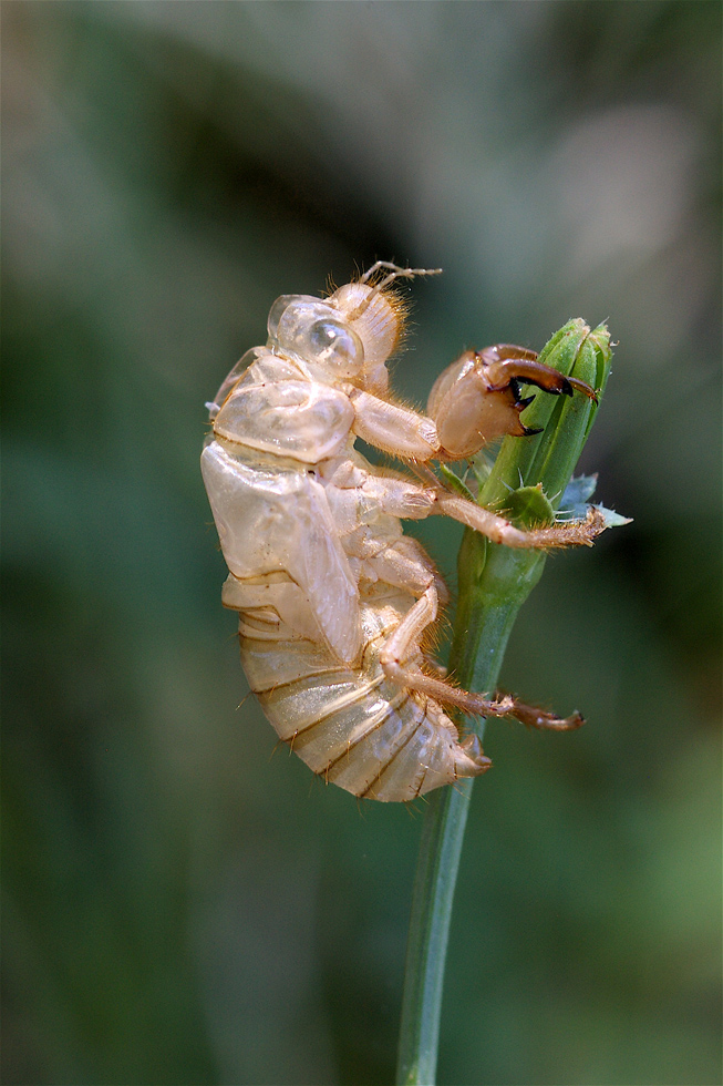 Ultimamente c'è un'inflazione di queste cuticole di cicala. Concludo la mia ricerca con queste tre immagini dello stesso soggetto, interpretate in modo diverso. Nella terza immagine si vede chiaramente da dove esce la cicala, dal dorso, cioè, per rispondere a qualche dubbio espresso su commenti fatti ad altre foto. 1/45 sec. f/9,5 treppiede, Pentax k100 d con Cosina 100 macro. La terza immagine 1/45 sec. f/11. Grazie!