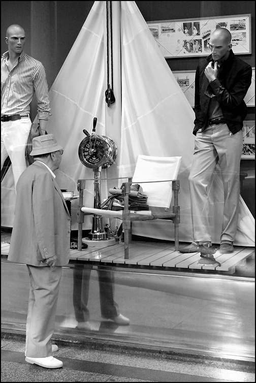 ..grande occhio nel sapere cogliere gli sguardi interrogativi dei manichini sull'uomo.. Ok!
